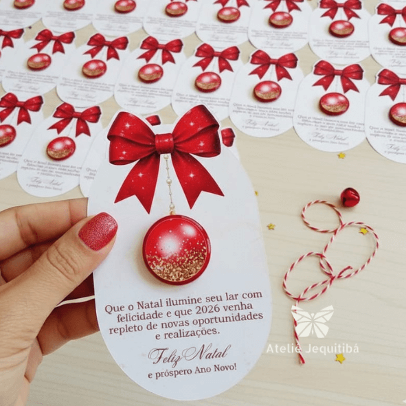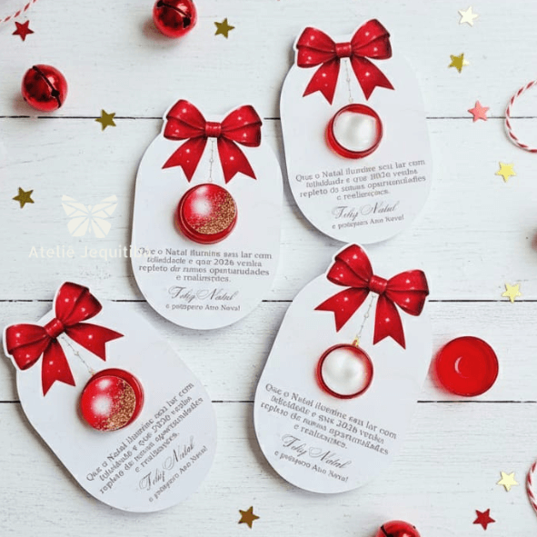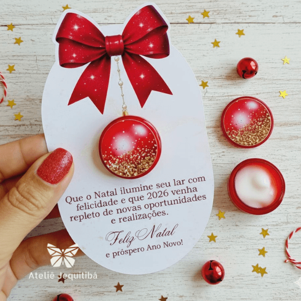 12 Cartões com Potinho Vermelho para Hidratante Natal